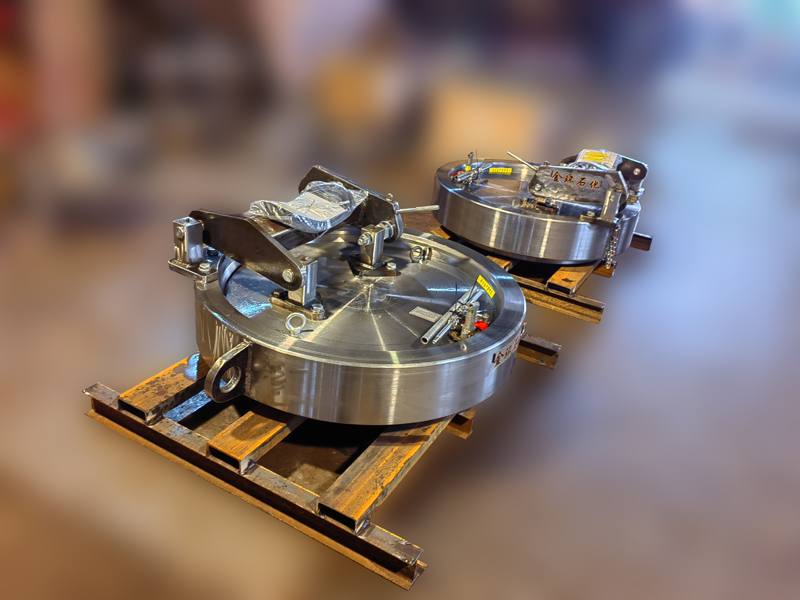快開盲板是用于壓力管道或壓力容器的圓形開口上的一種機械裝置。一般由筒體法蘭、頭蓋、勾圈或卡箍、密封圈、安全聯(lián)鎖機構(gòu)、開閉機構(gòu)、轉(zhuǎn)臂及短節(jié)(需要時)等部件構(gòu)成。